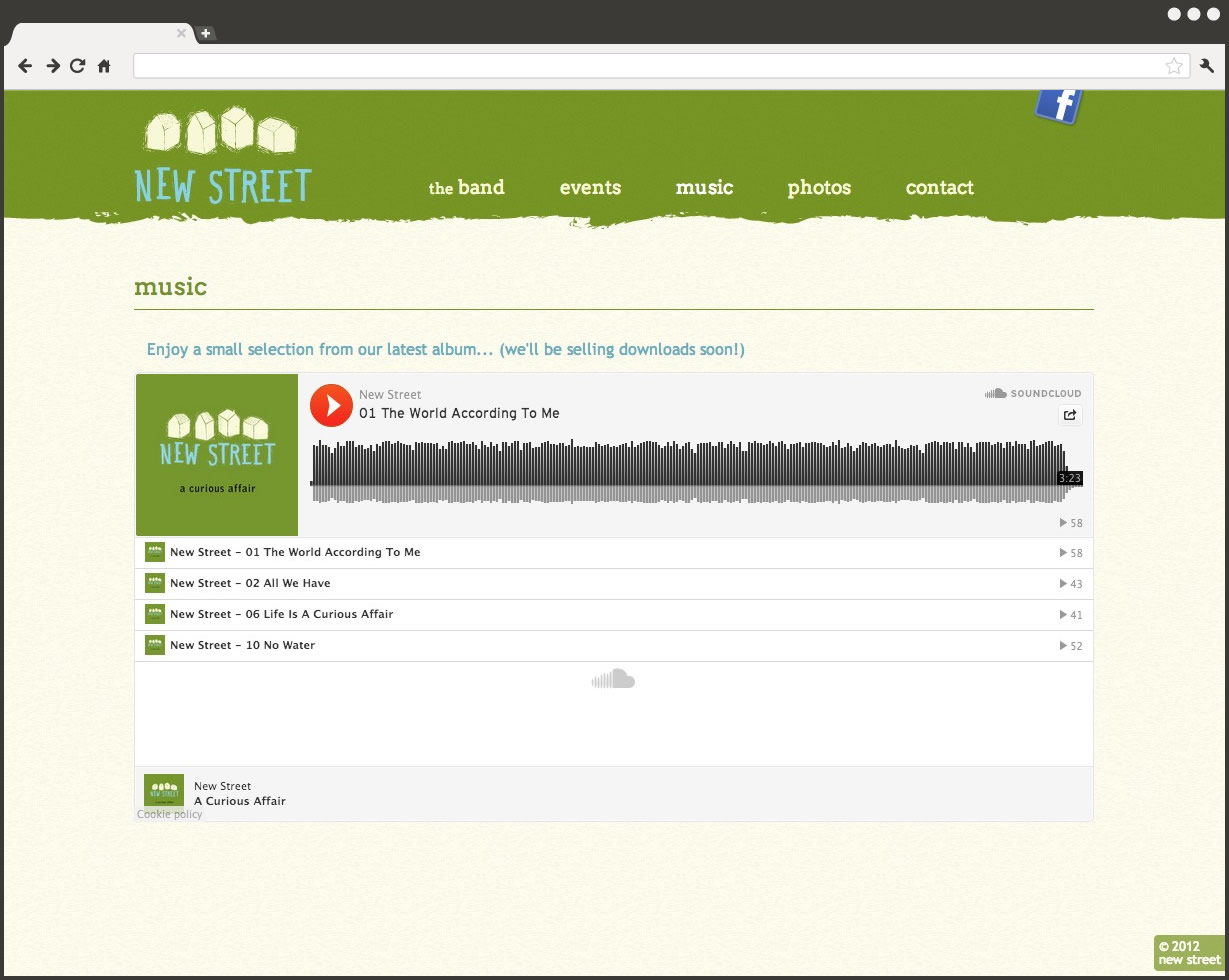 New Street plays original music with a unique sound that spans many musical genres ranging from funk and roots to disco. The group plays Calgary pubs, benefit concerts and the South Country Fair.