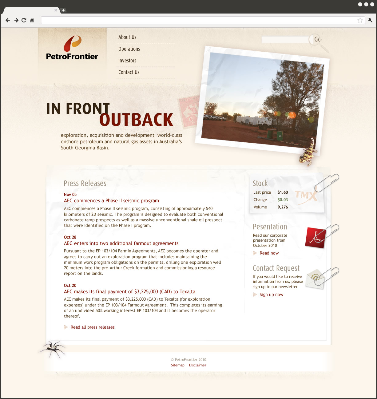 PetroFrontier is an international oil and gas corporation with its main operations in the Australian Outback.