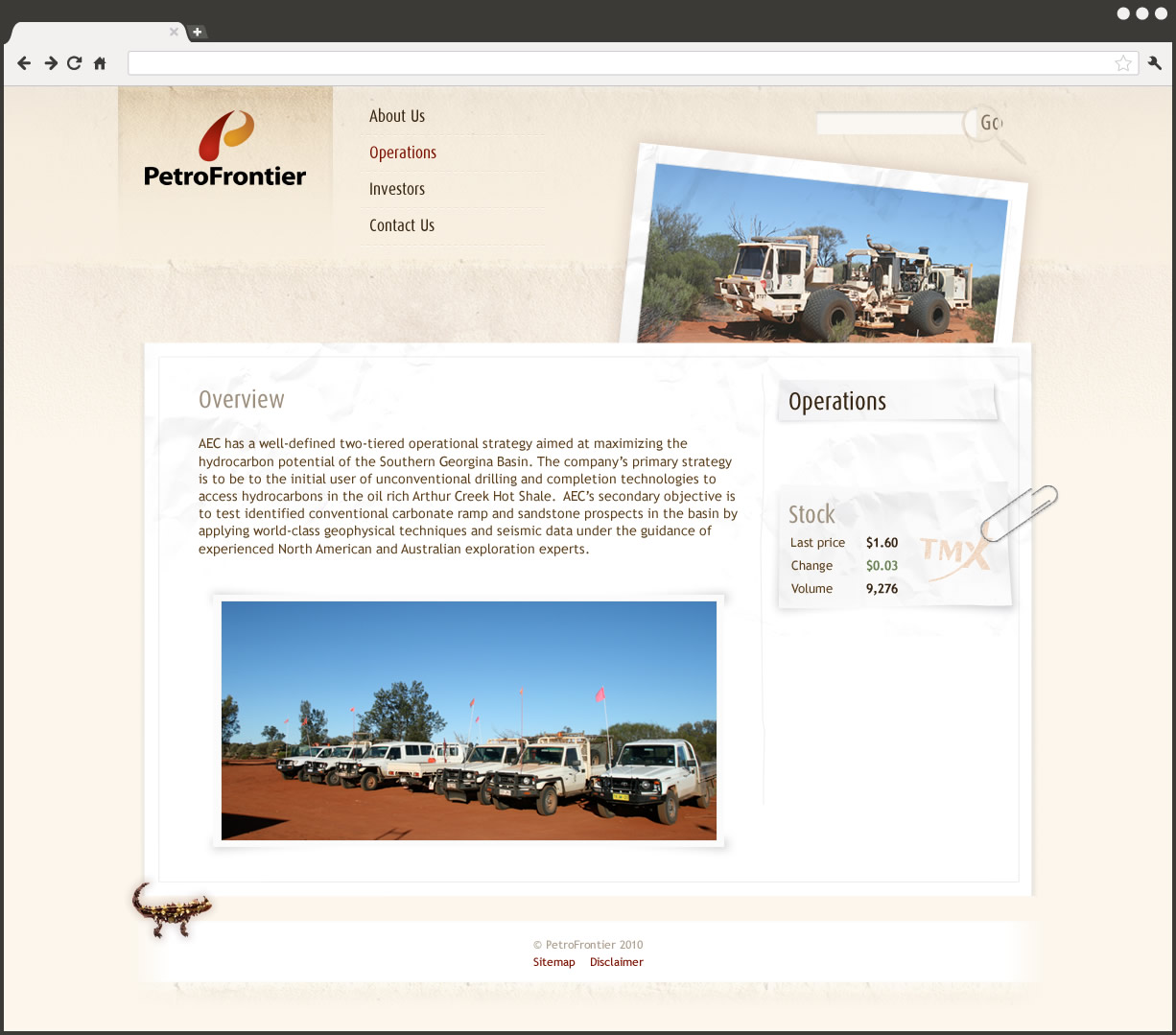 PetroFrontier is an international oil and gas corporation with its main operations in the Australian Outback.